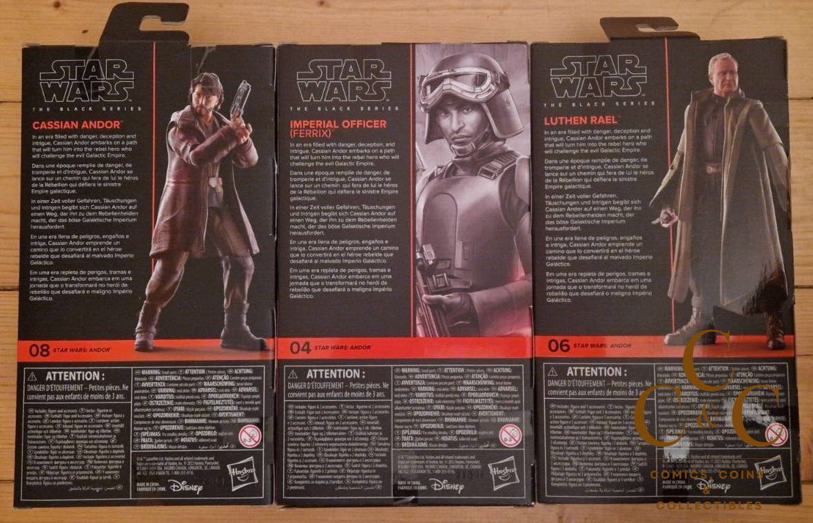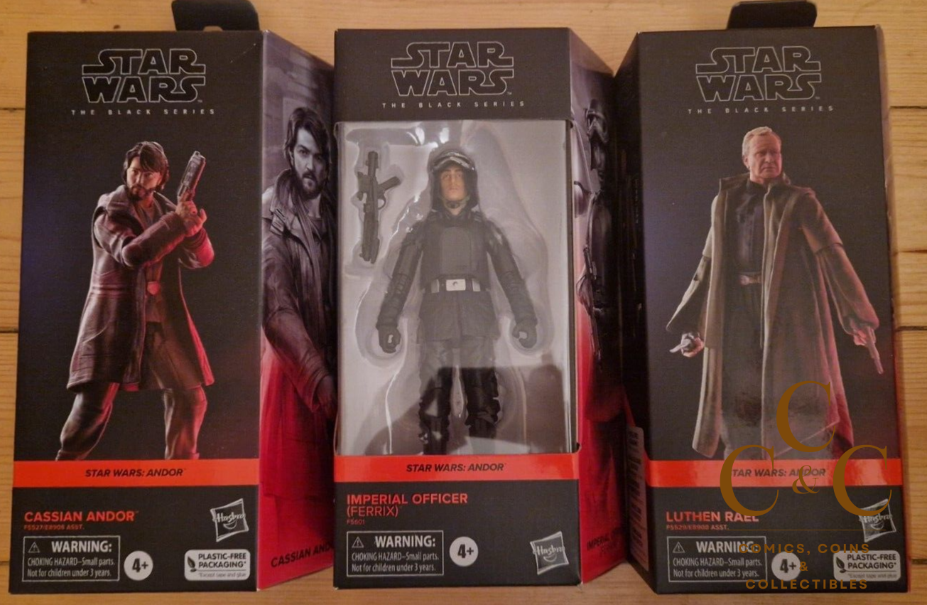 You are bidding on the three Actionfigures: Cassian Andor / Ferrix / Luthen Rael from Star Wars: Black Series: Andor